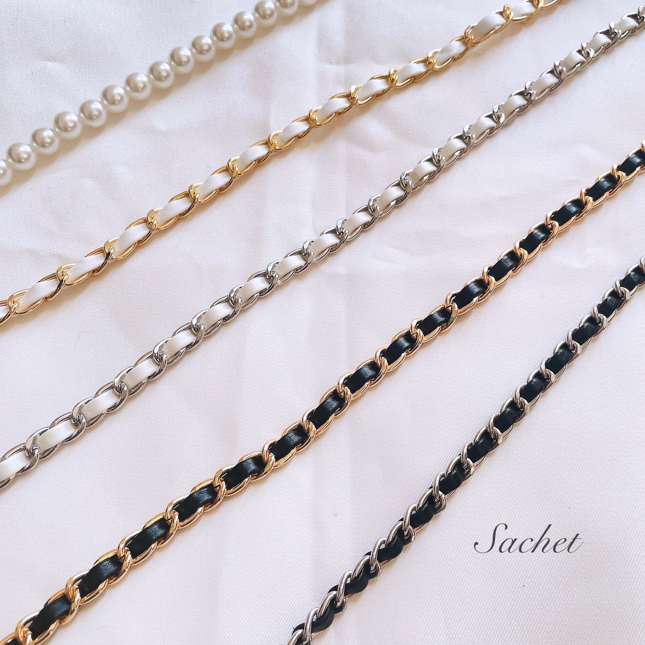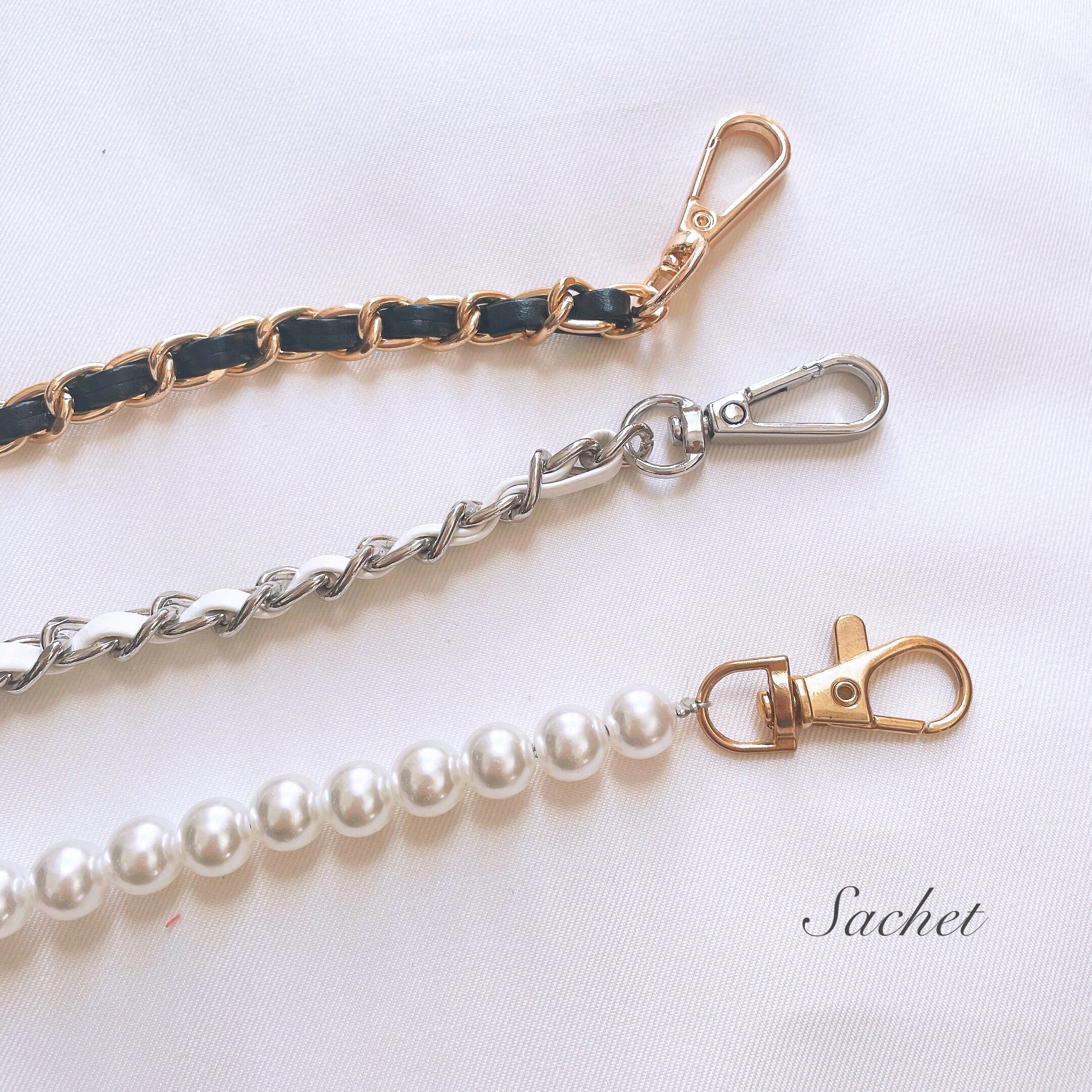 ショルダー紐はホワイト×ゴールドのチェーンがついております。