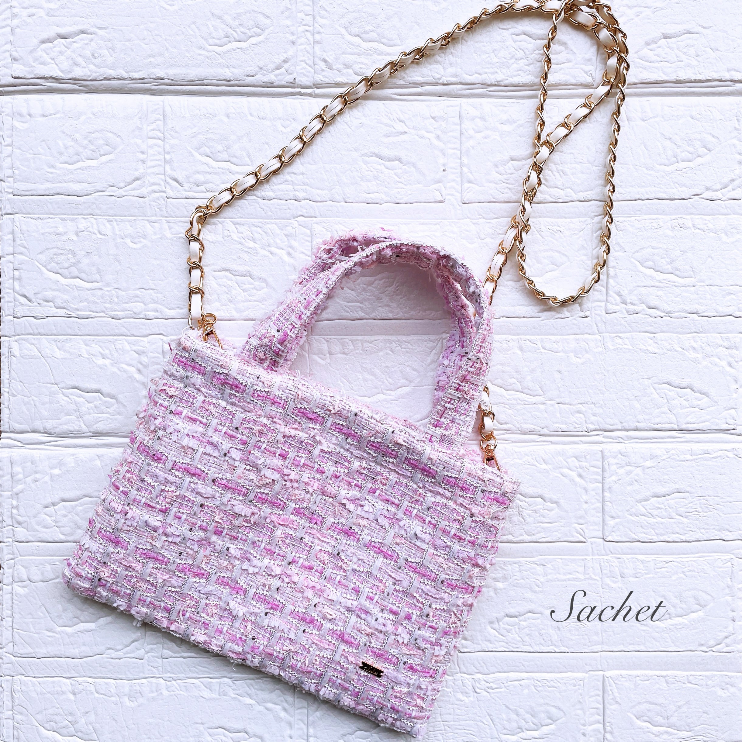 フランスのMALHIA KENT社のツイードを使用したこのミニバッグは、ファッションに華やかさを加えるアイテムです。