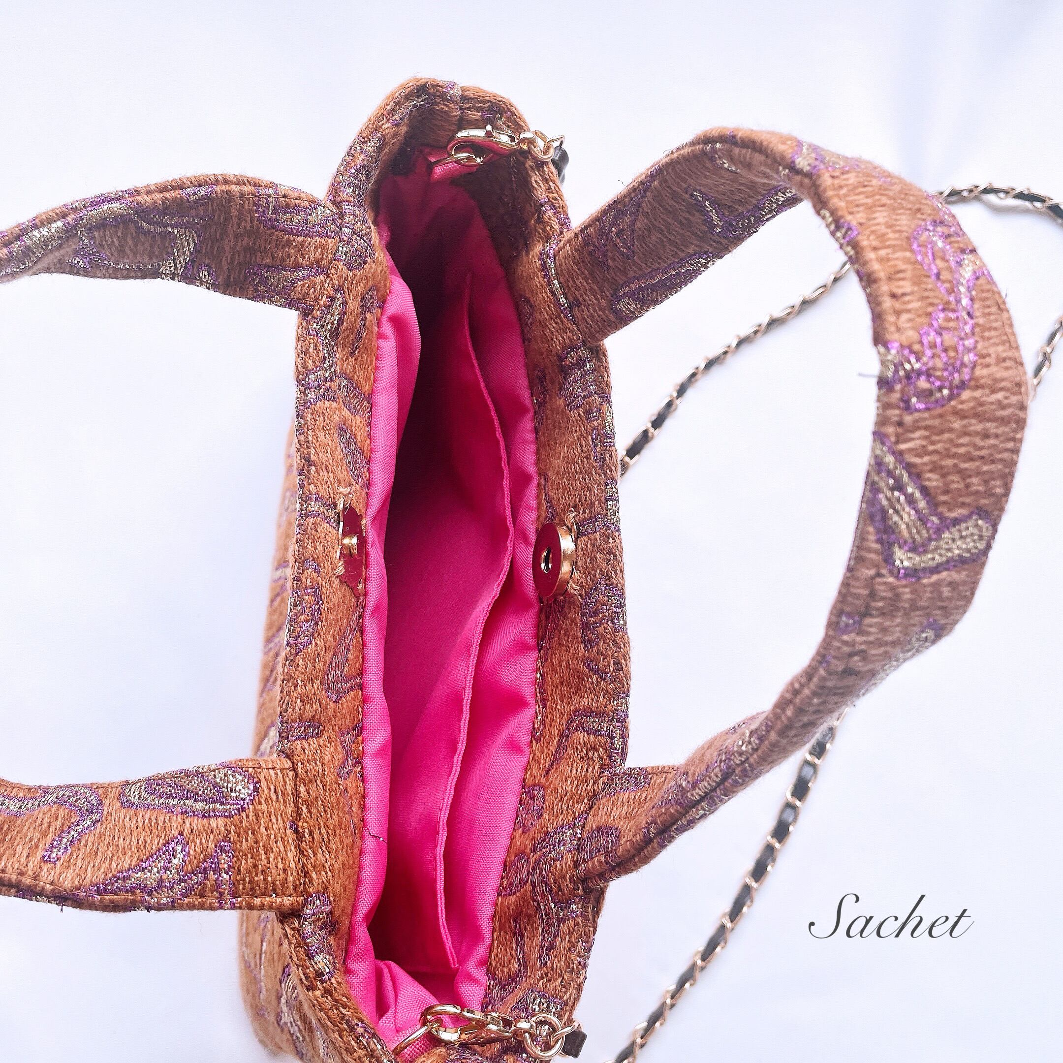 ・ブラウン&ゴールドのショルダーチェーン付き