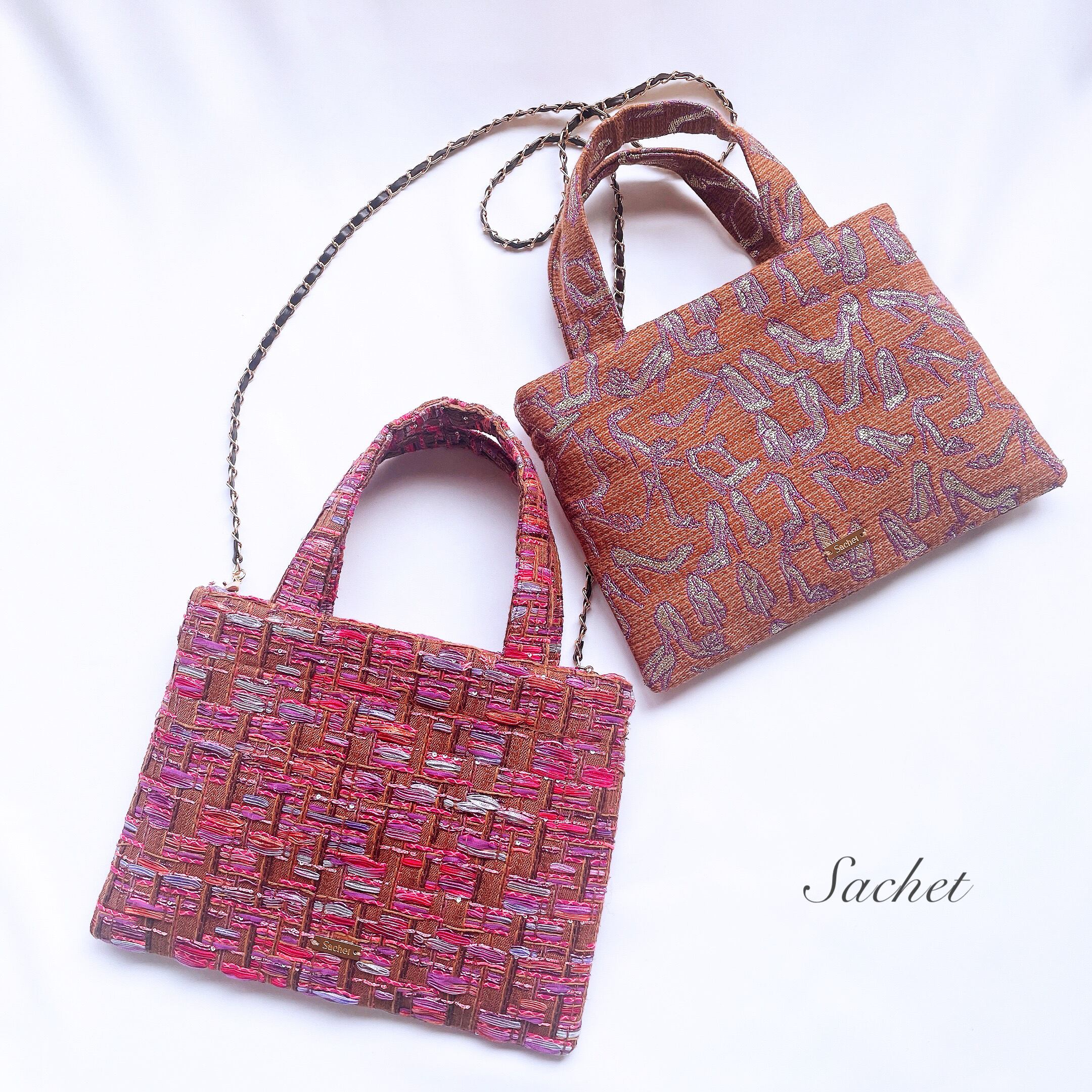 Sachet Tweed bag / Flat mini(Brownハイヒール柄)