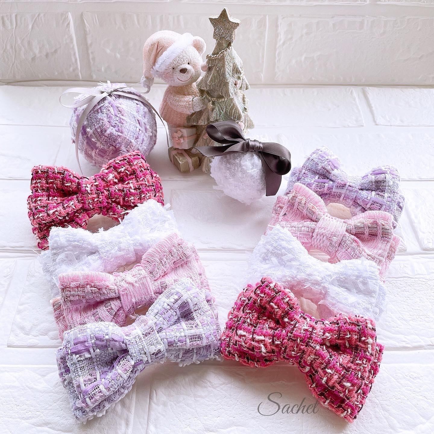 マリアケント&リントンツイードのリボンバレッタ(ダブルデザイン)