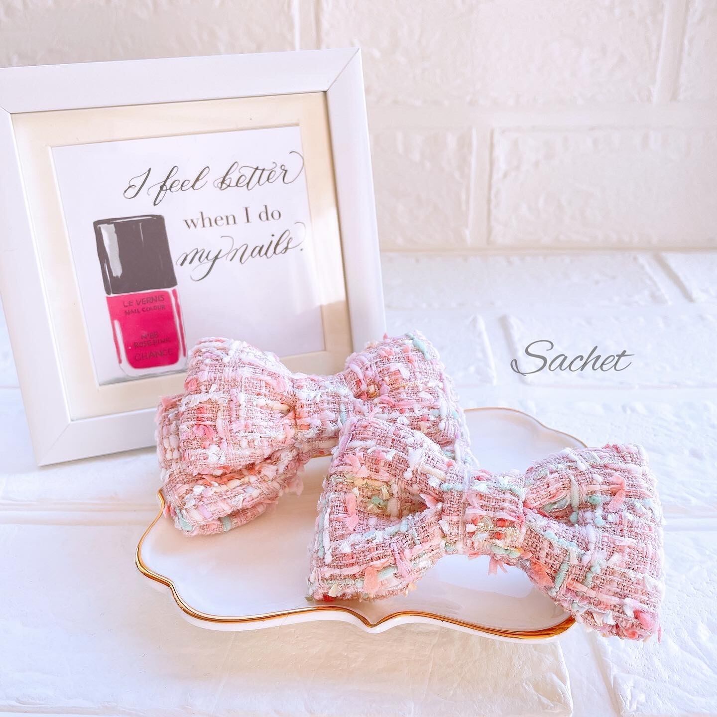 尾州ツイードのリボンバレッタ/ダブルデザイン(パステルカラーMIX)