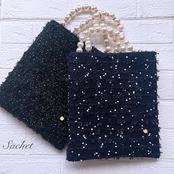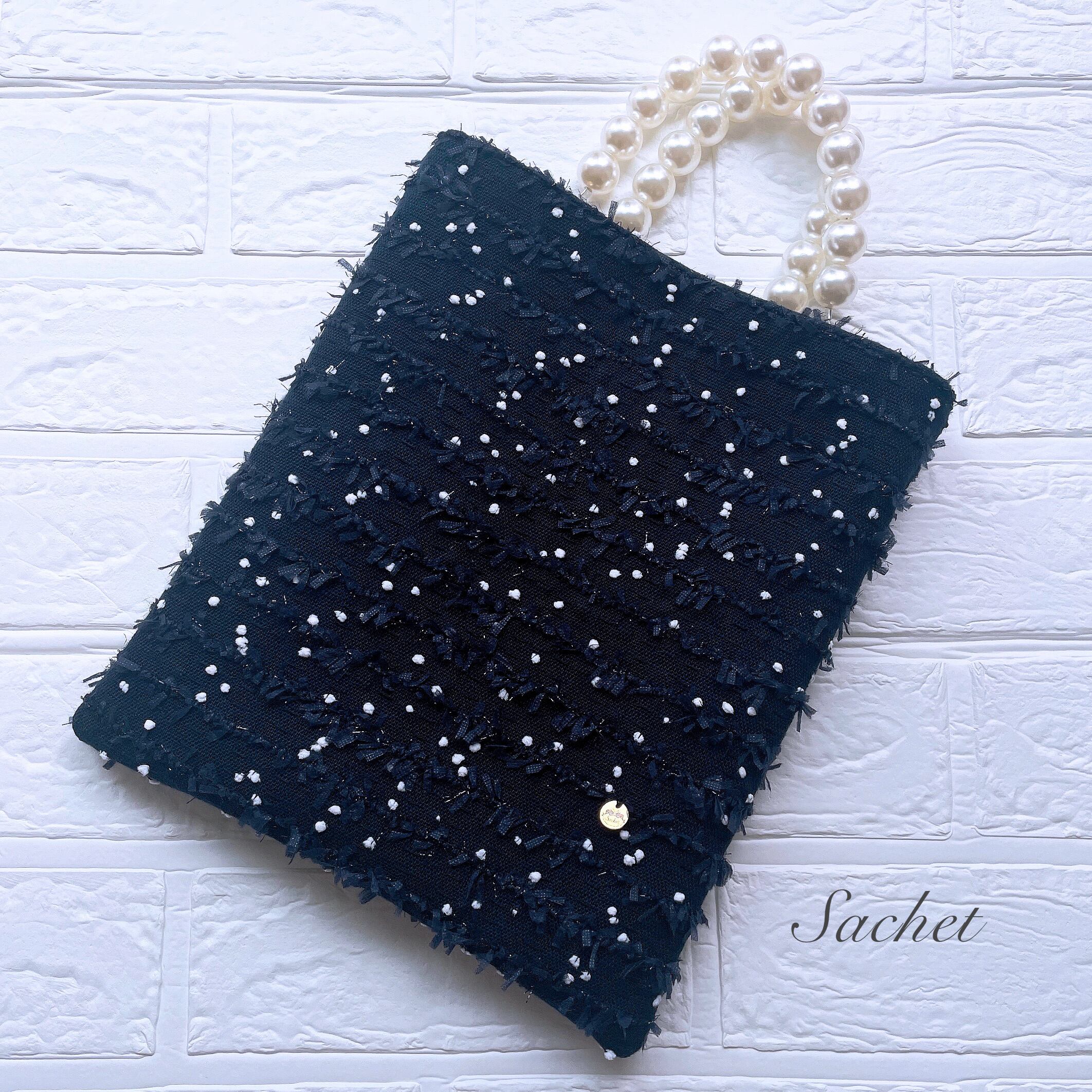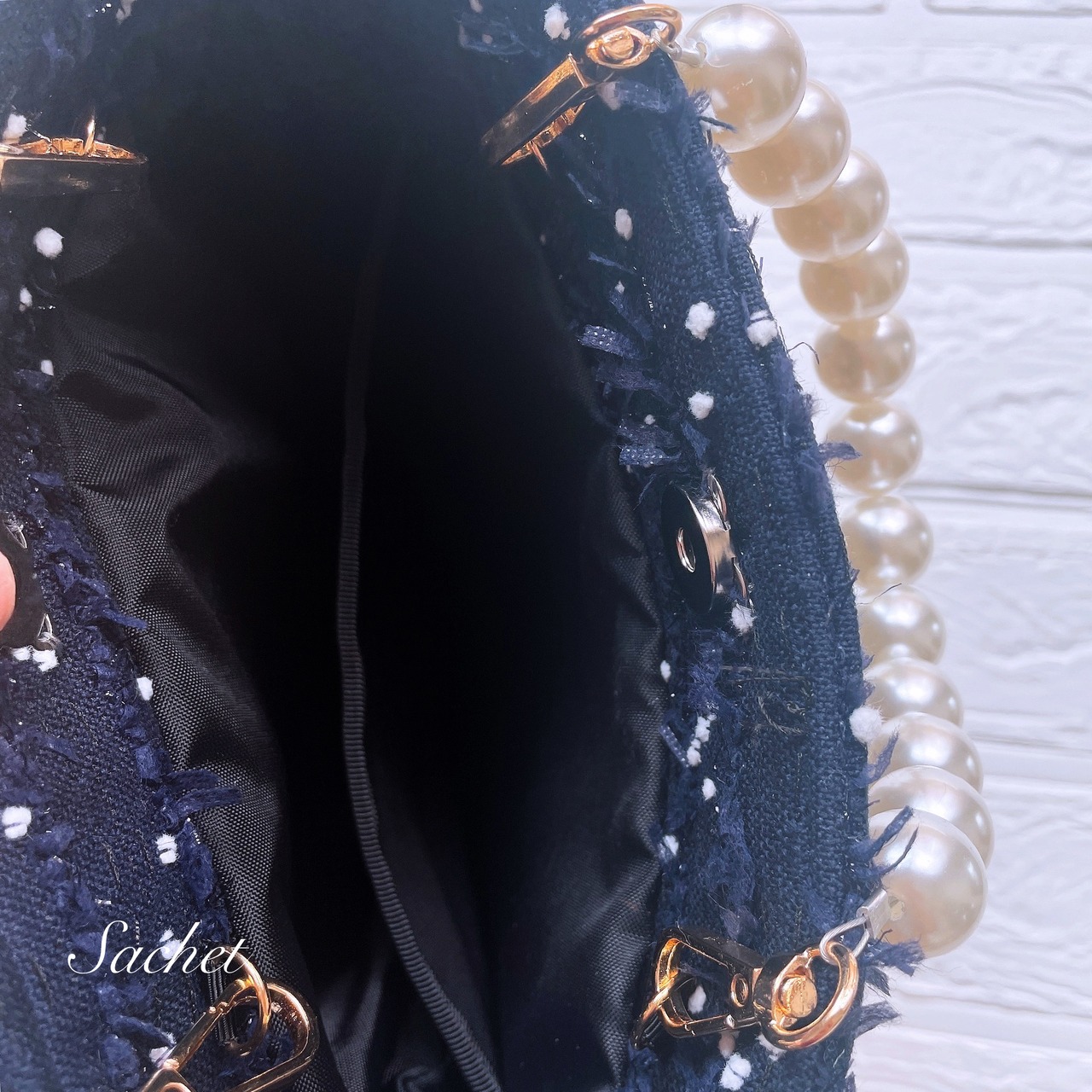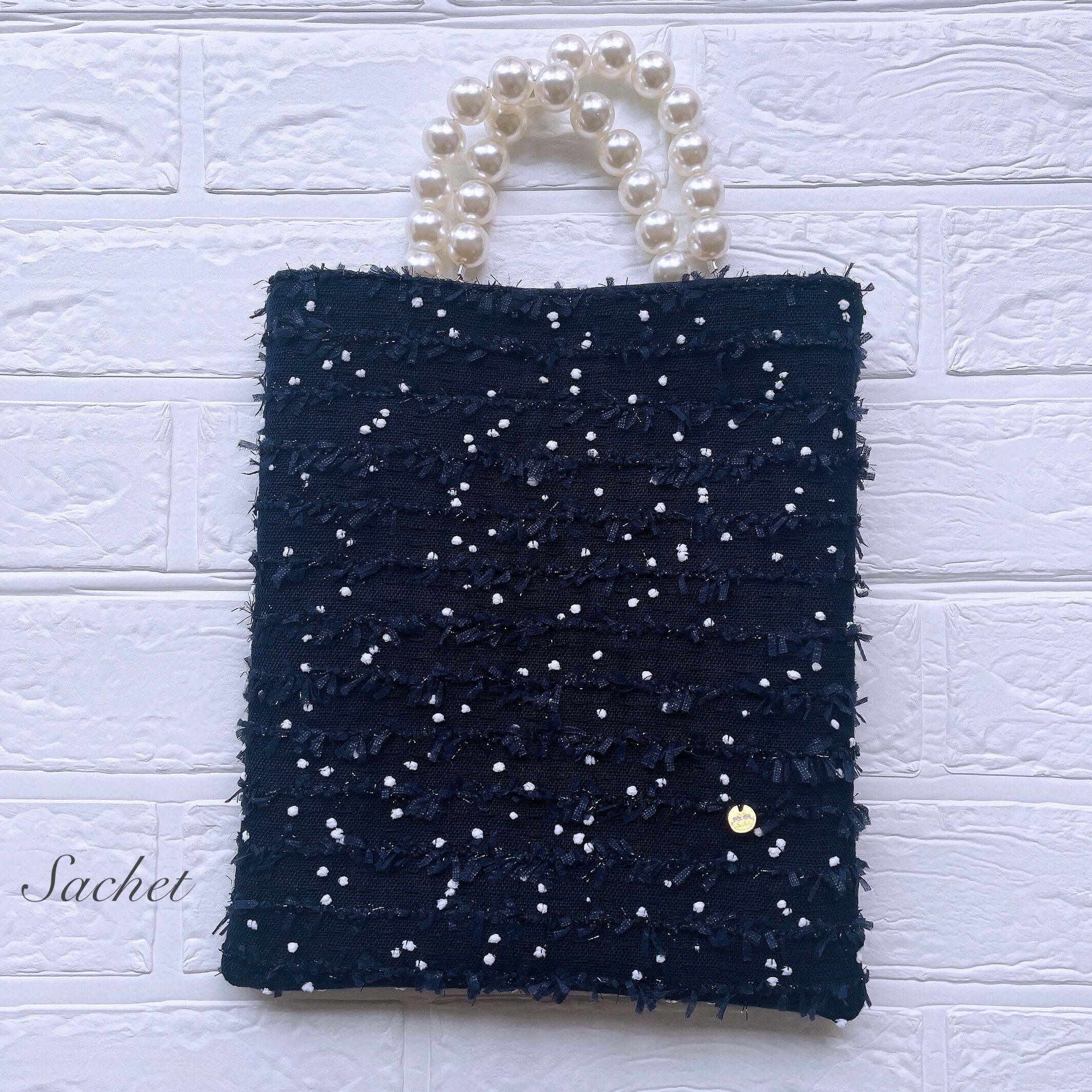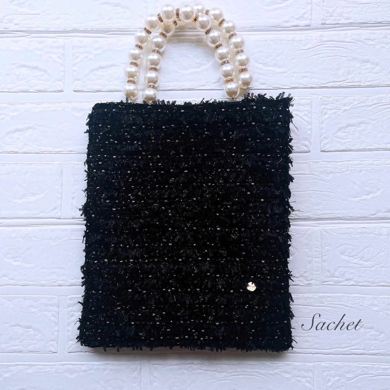 【★予約販売/★ネイビー1点のみ即納】Sachet Tweed bag / Flat(ブラック / ネイビー)