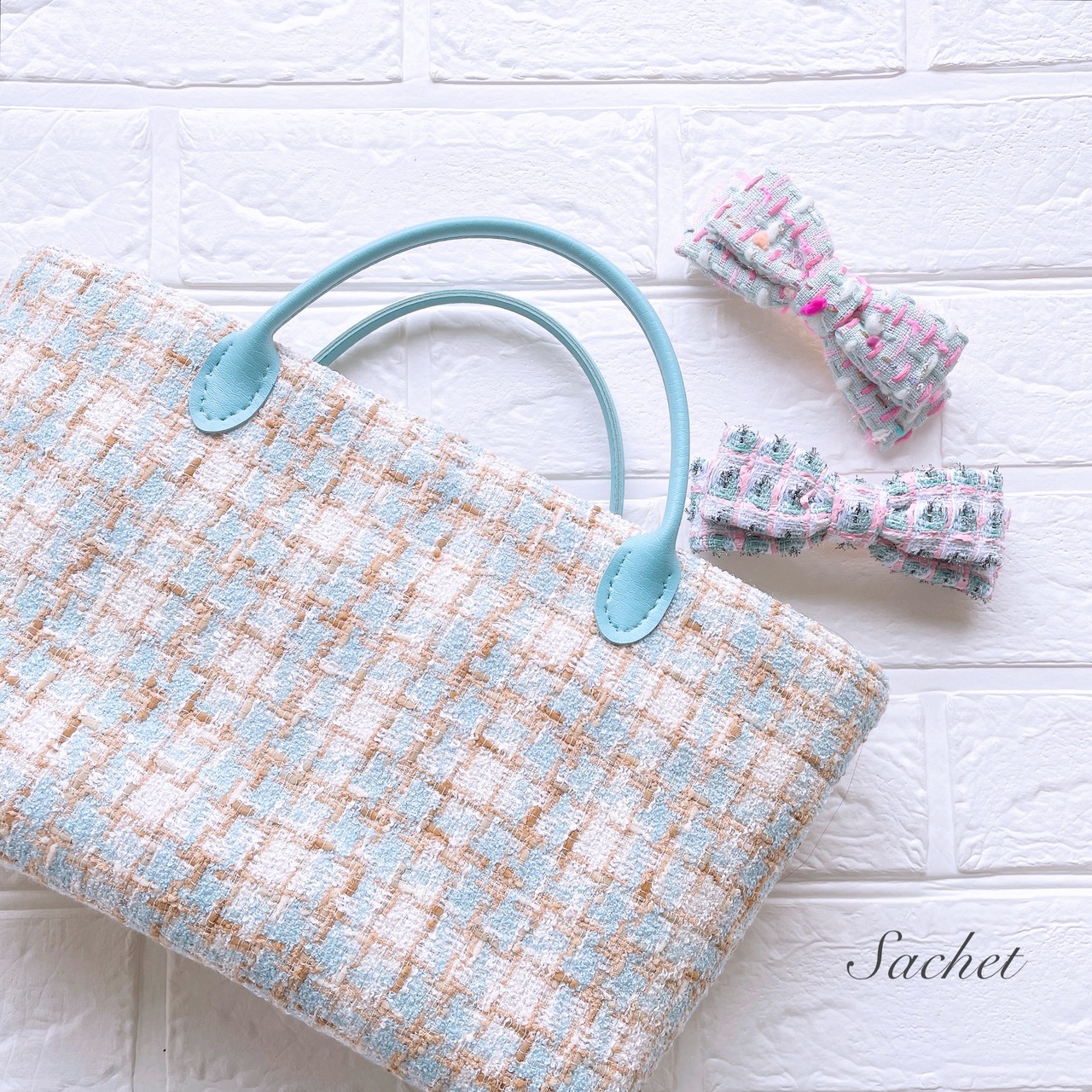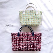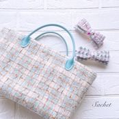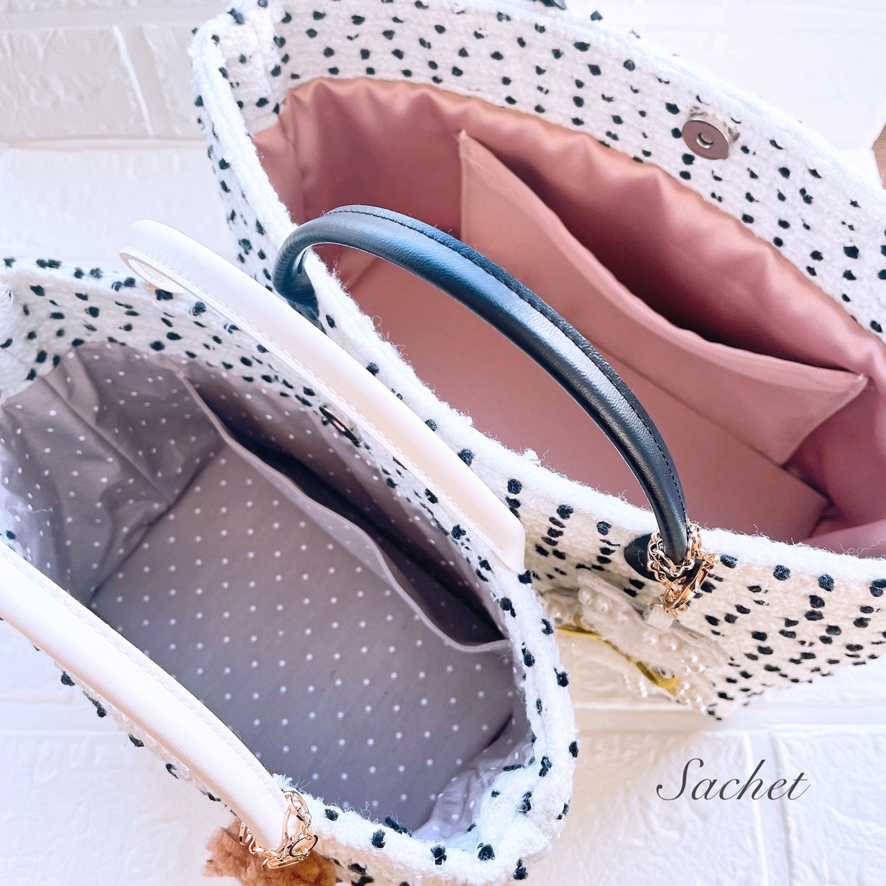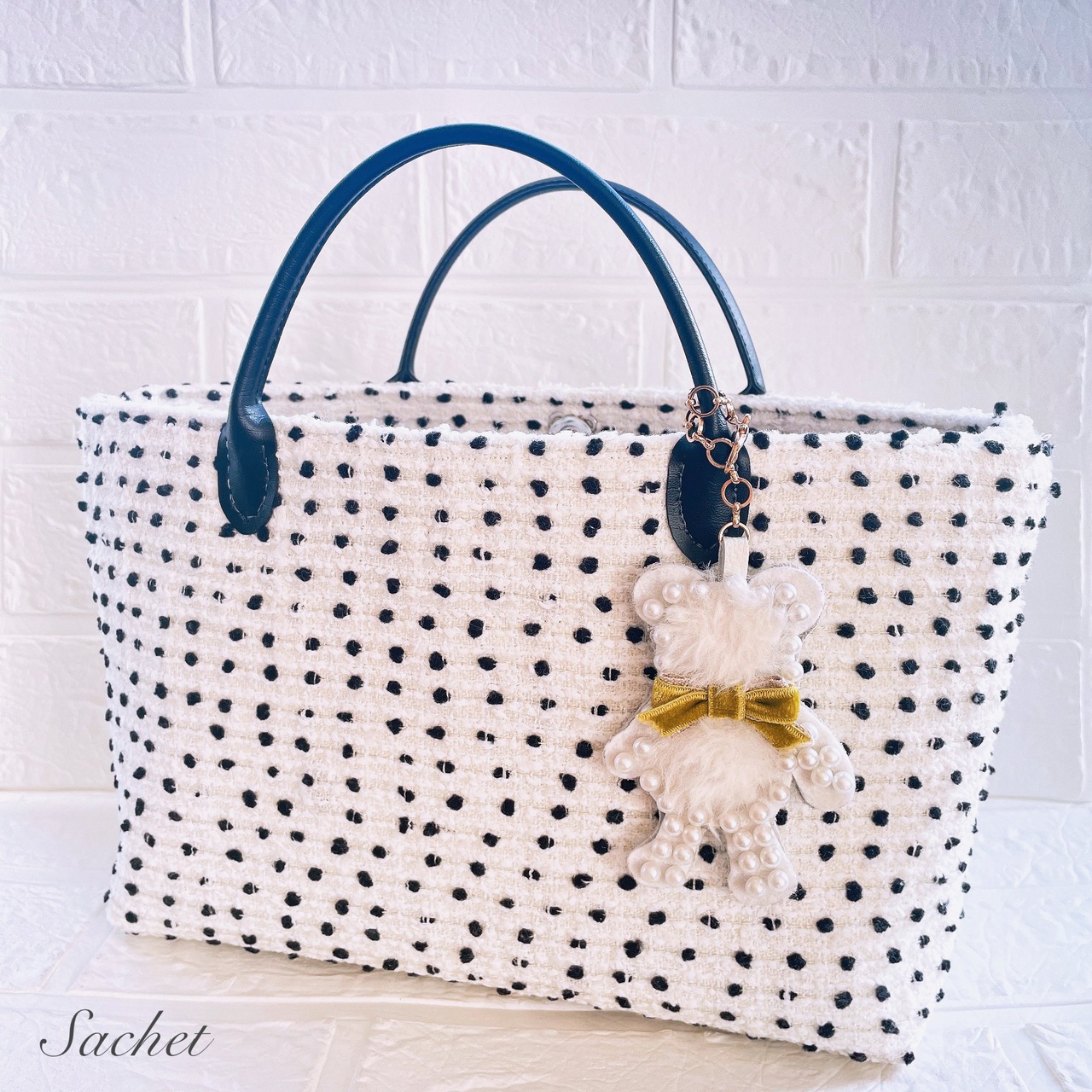 【★予約販売】Sachet Tweed bag / Wide(白地×ブラックドット)