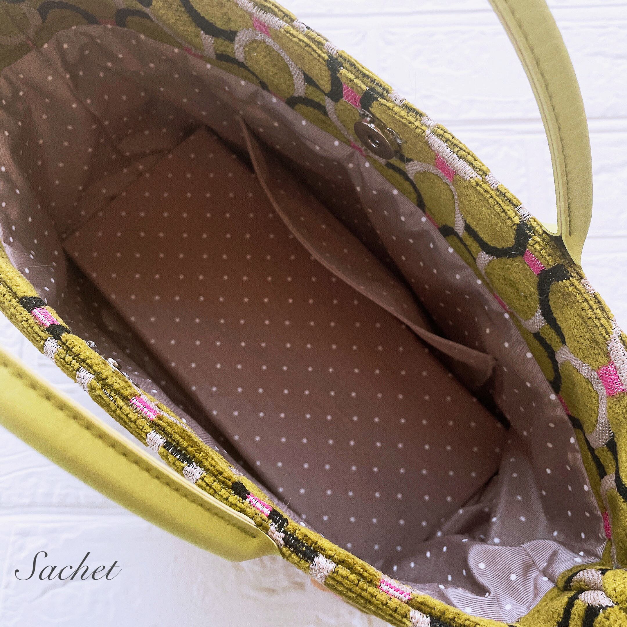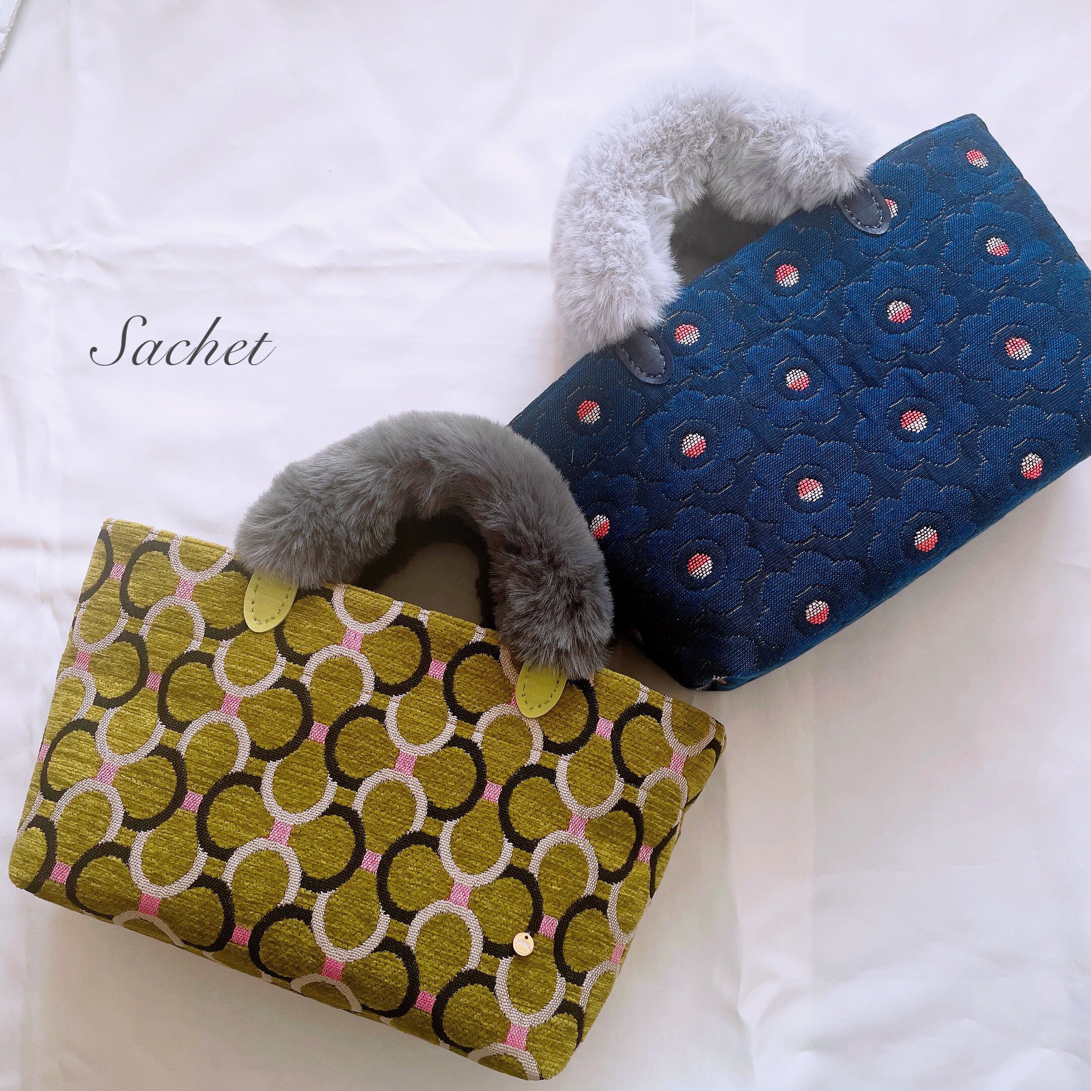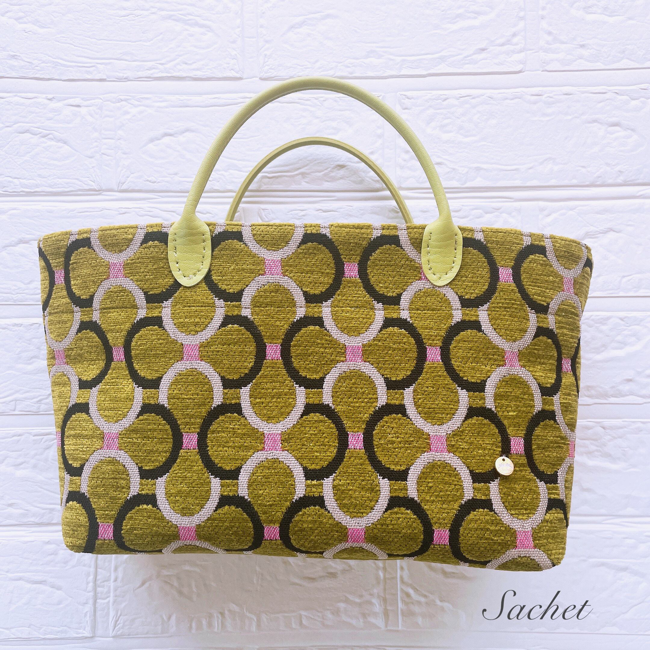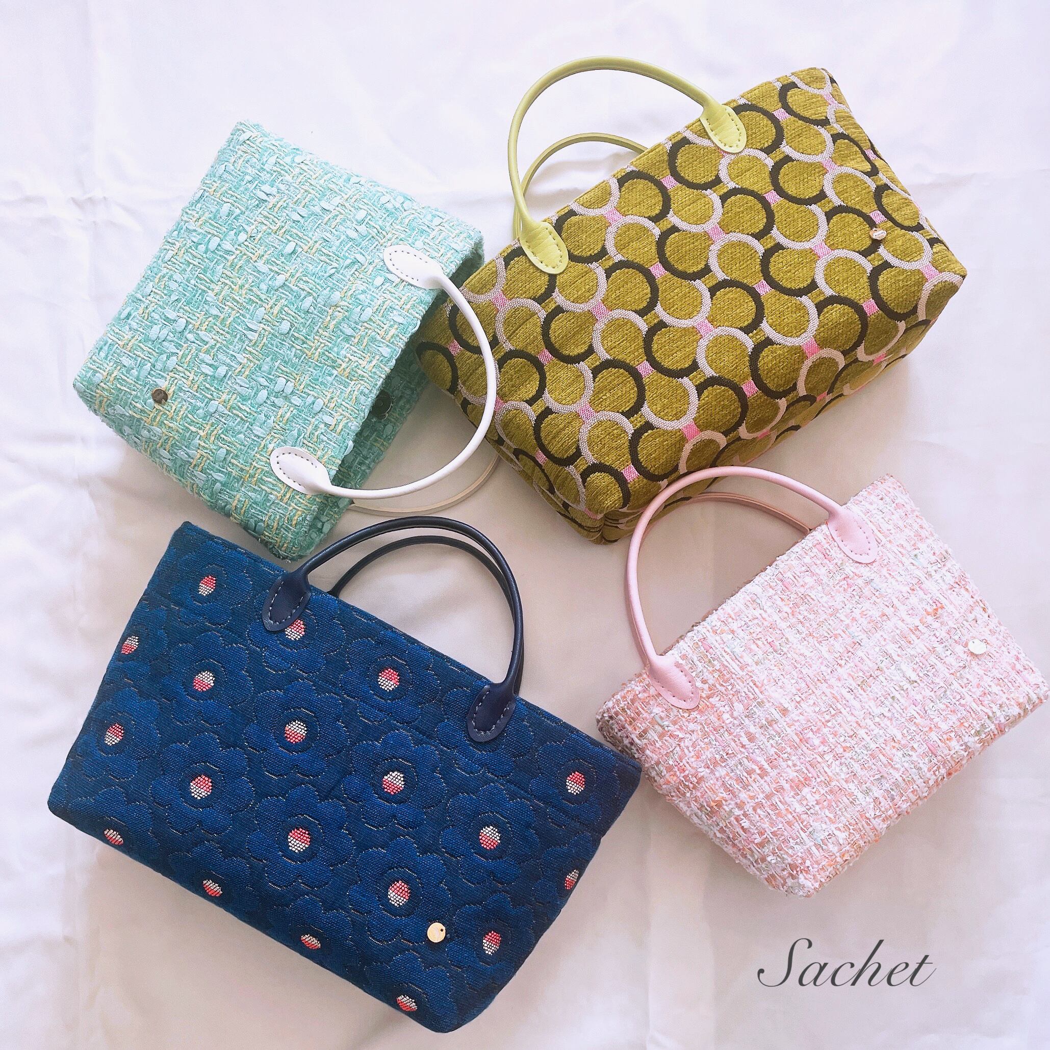 【即納】Sachet Tweed bag / Wide(ピスタチオグリーン&サークル柄)